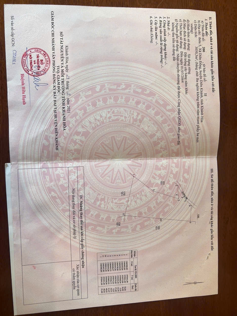Diện tích: 3.050 m², đất trồng cây lâu năm, đã có sổ đỏ riêng.