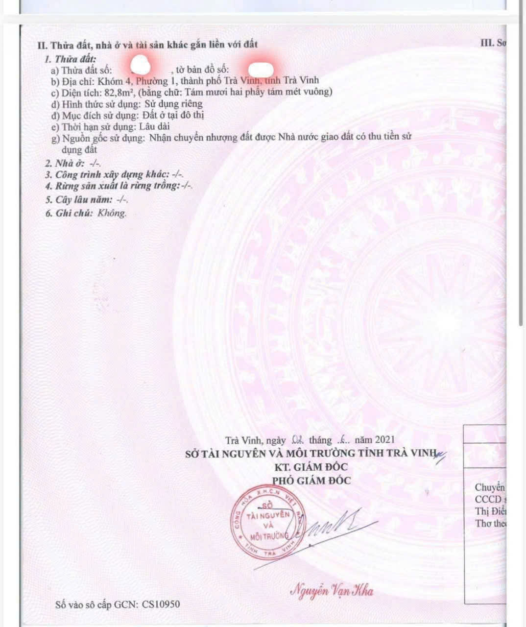 Trong đó: thổ cư 82,8 m² – còn lại 95,8 m² đất CLN