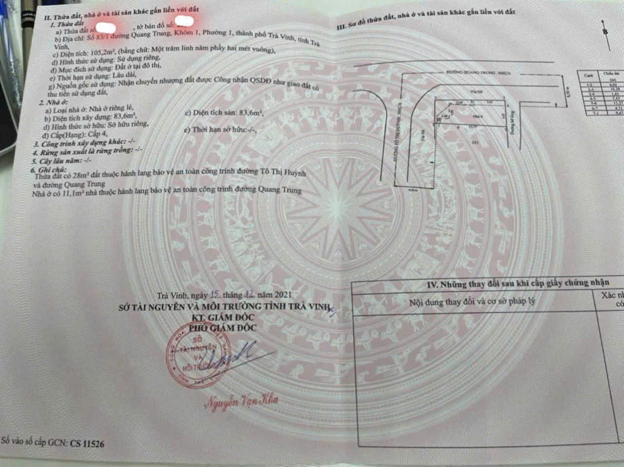 Hộ khẩu Phường 1 – ngay trung tâm TP Trà Vinh
